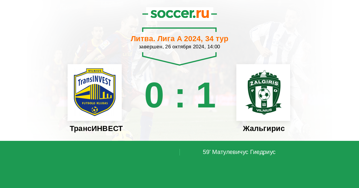 Протокол матча ТрансИНВЕСТ против Жальгирис