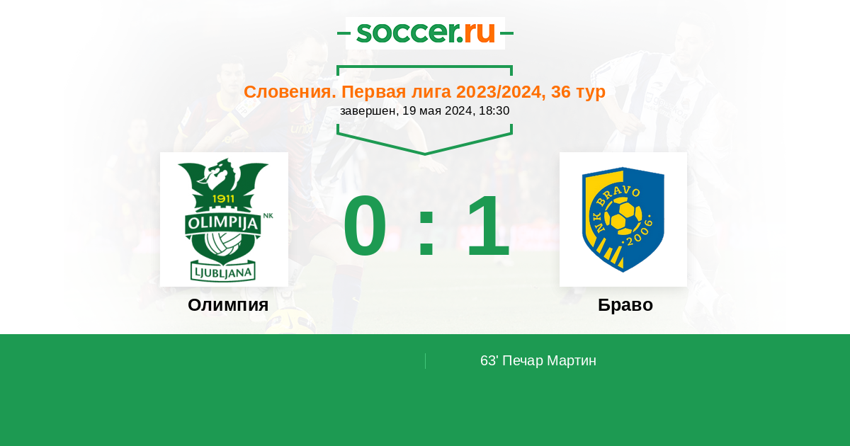 Протокол матча Олимпия против Браво
