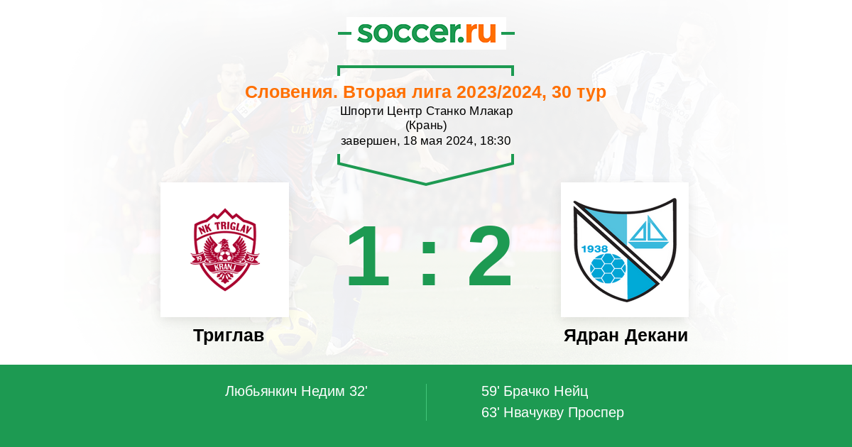 Протокол матча Триглав против Ядран Декани