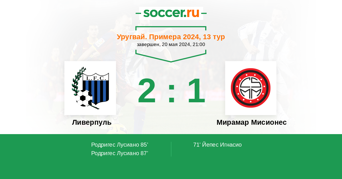 Протокол матча Ливерпуль против Мирамар Мисионес