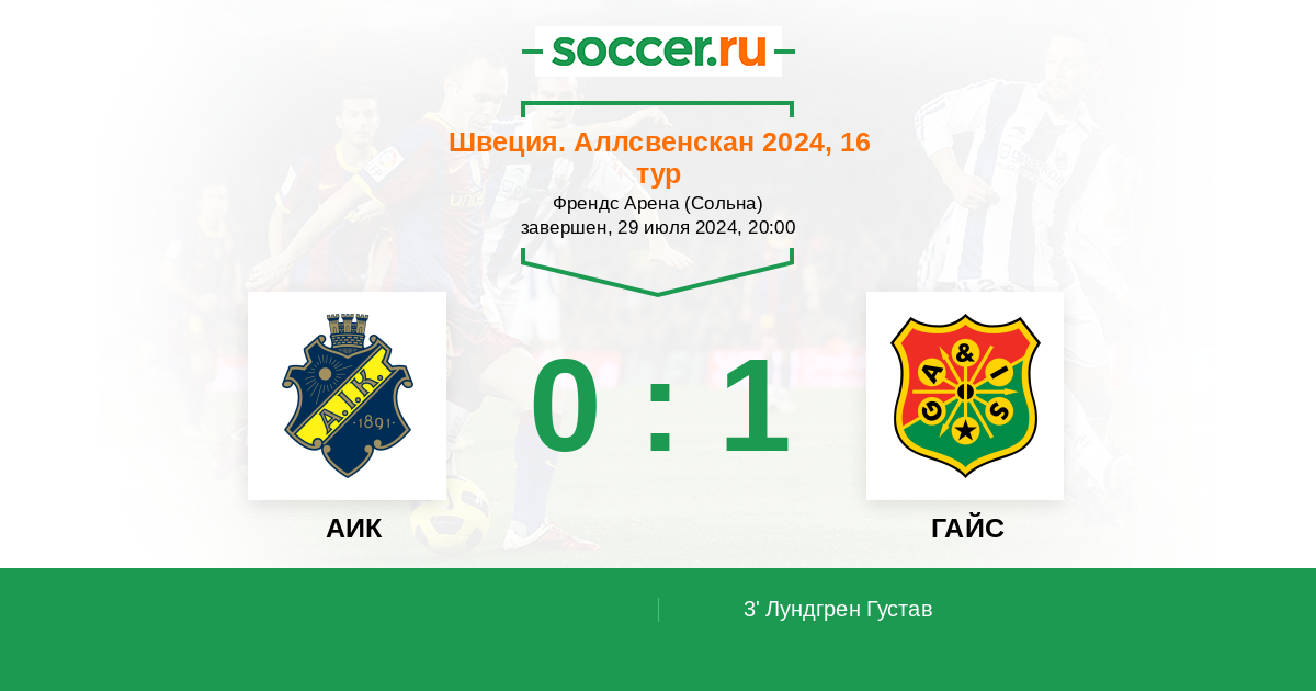 3' (0:1) Лундгрен Густав (9) (Хольмстрем Александер (18))