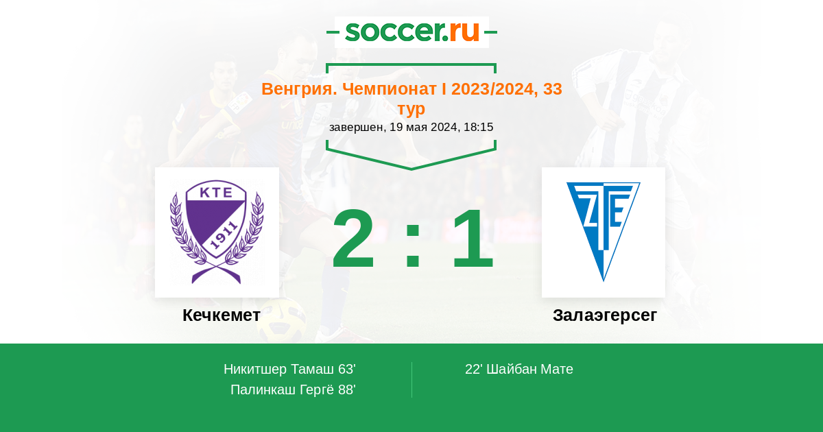 Протокол матча Кечкемет против Залаэгерсег