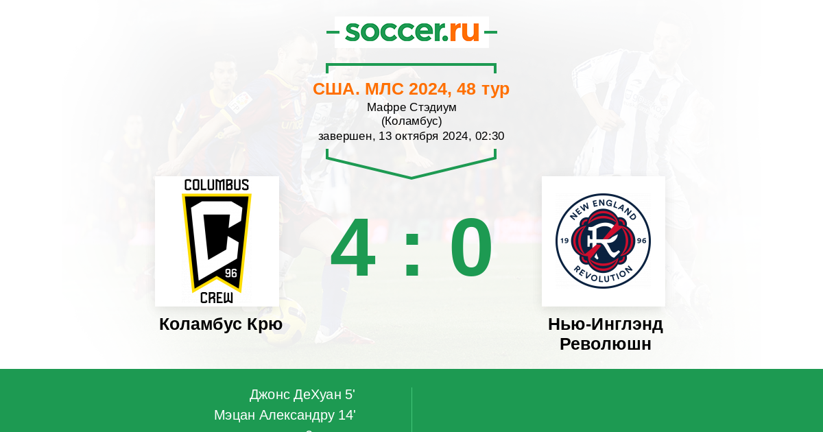 В первом круге текущего первенства Коламбус Крю разгромил Нью Ингленд на выезде со счетом 5:1.