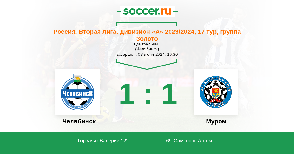 Протокол матча Челябинск против Муром