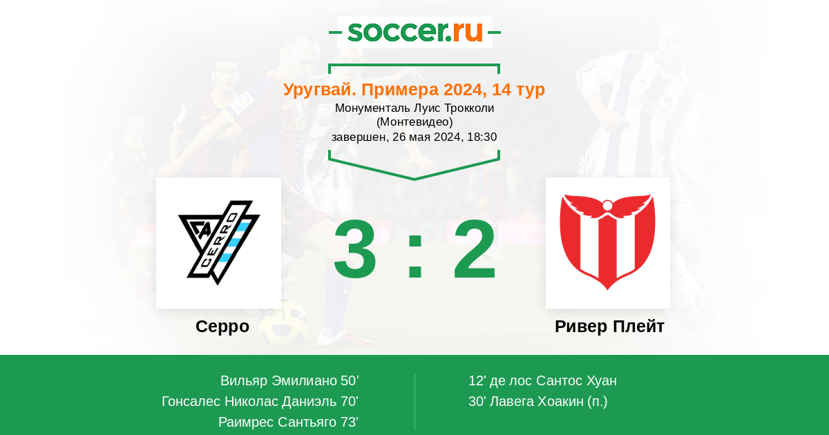 Протокол матча Серро против Ривер Плейт