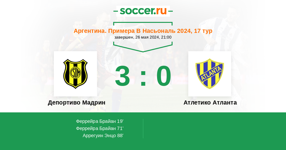 Протокол матча Депортиво Мадрин против Атлетико Атланта
