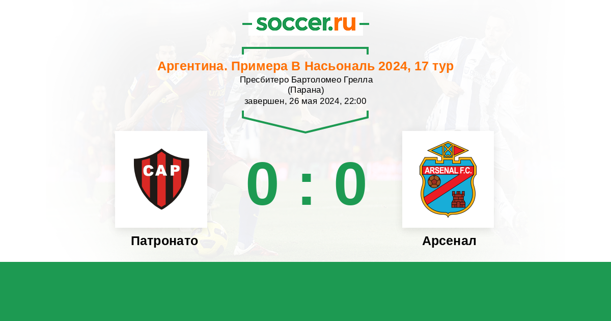 Протокол матча Патронато против Арсенал