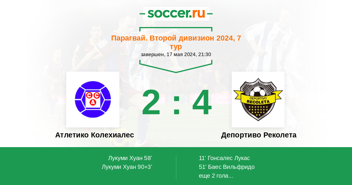 Протокол матча Атлетико Колехиалес против Депортиво Реколета