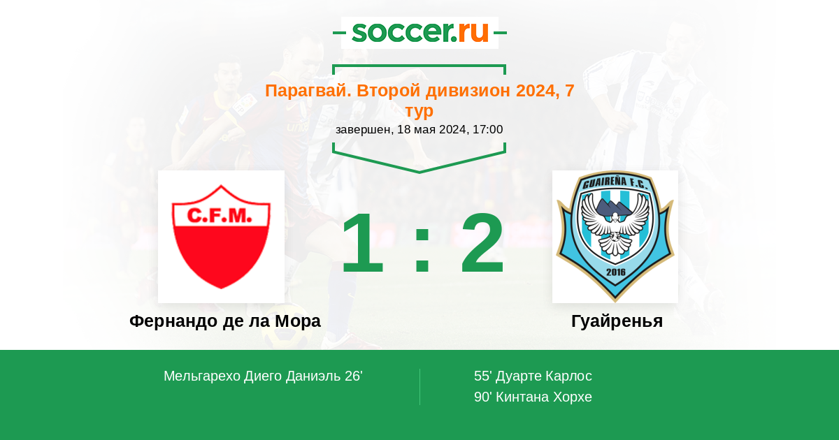 Протокол матча Фернандо де ла Мора против Гуайренья