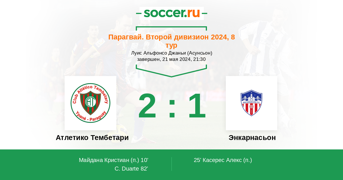 Протокол матча Атлетико Тембетари против Энкарнасьон