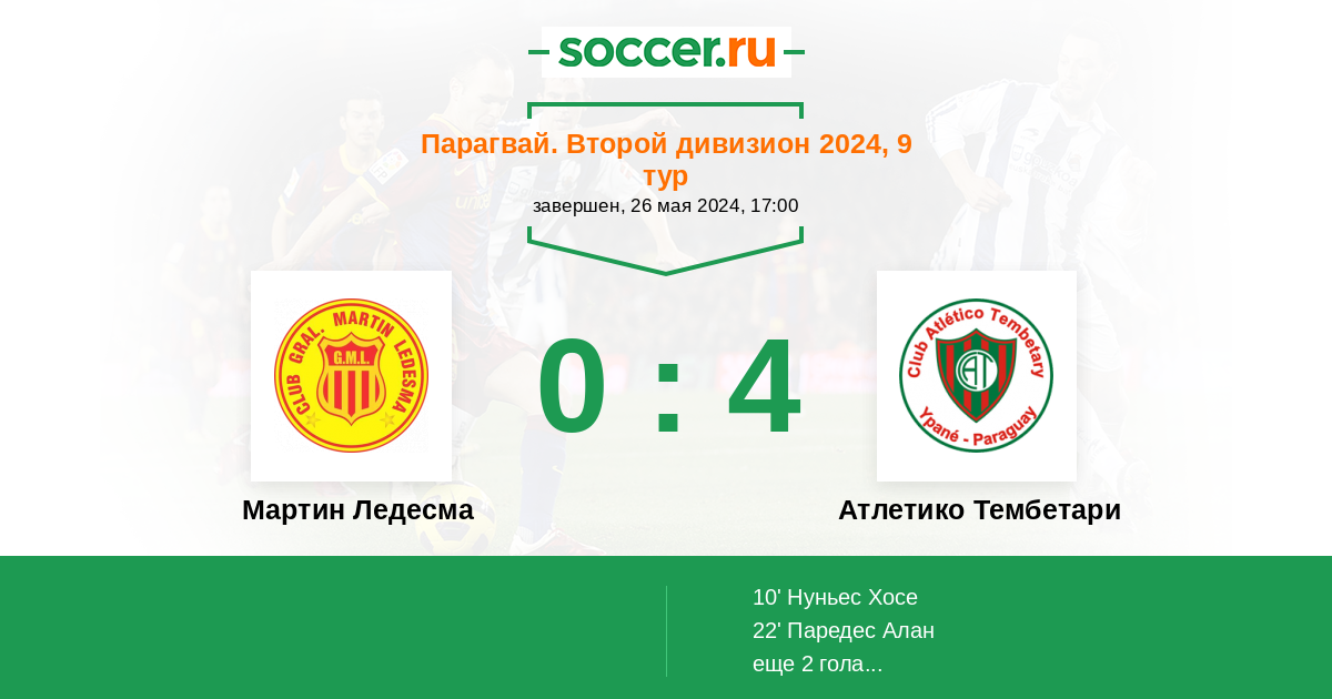 Протокол матча Мартин Ледесма против Атлетико Тембетари