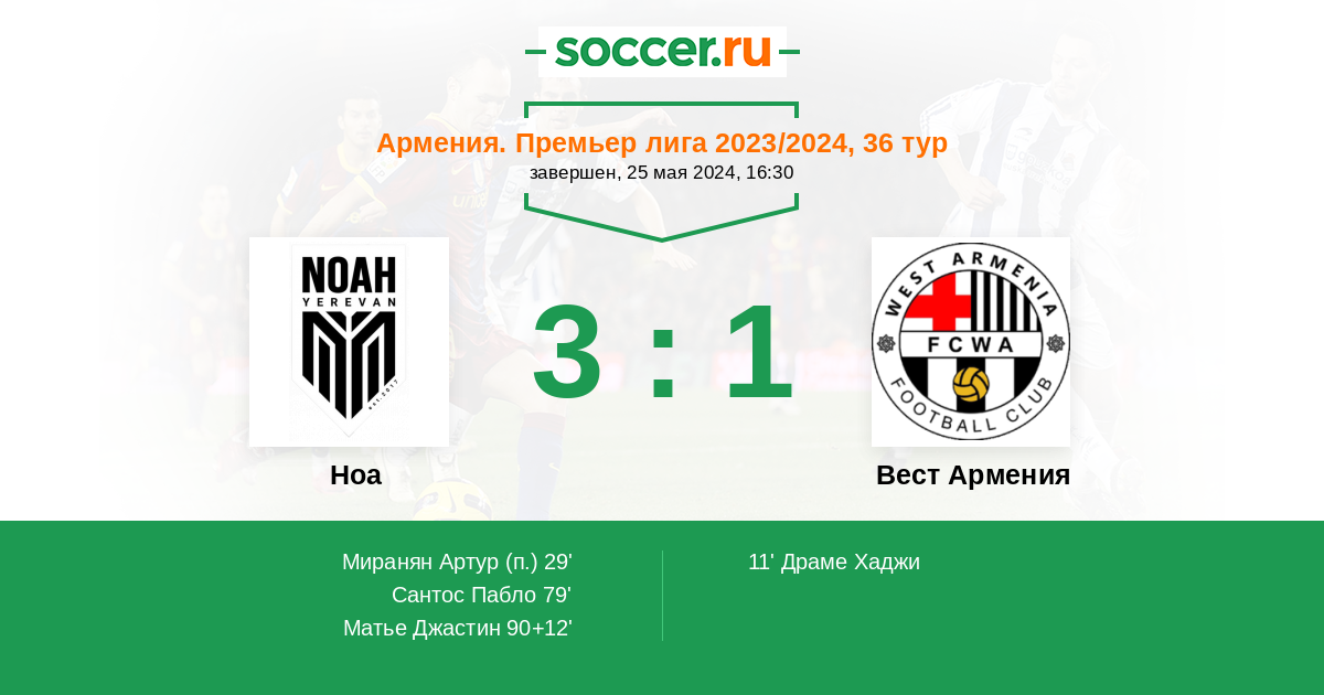 Протокол матча Ноа против Вест Армения