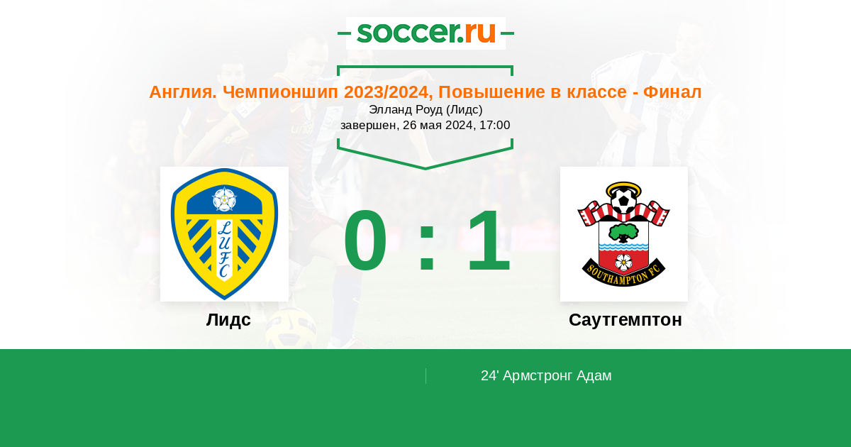 Протокол матча Лидс против Саутгемптон