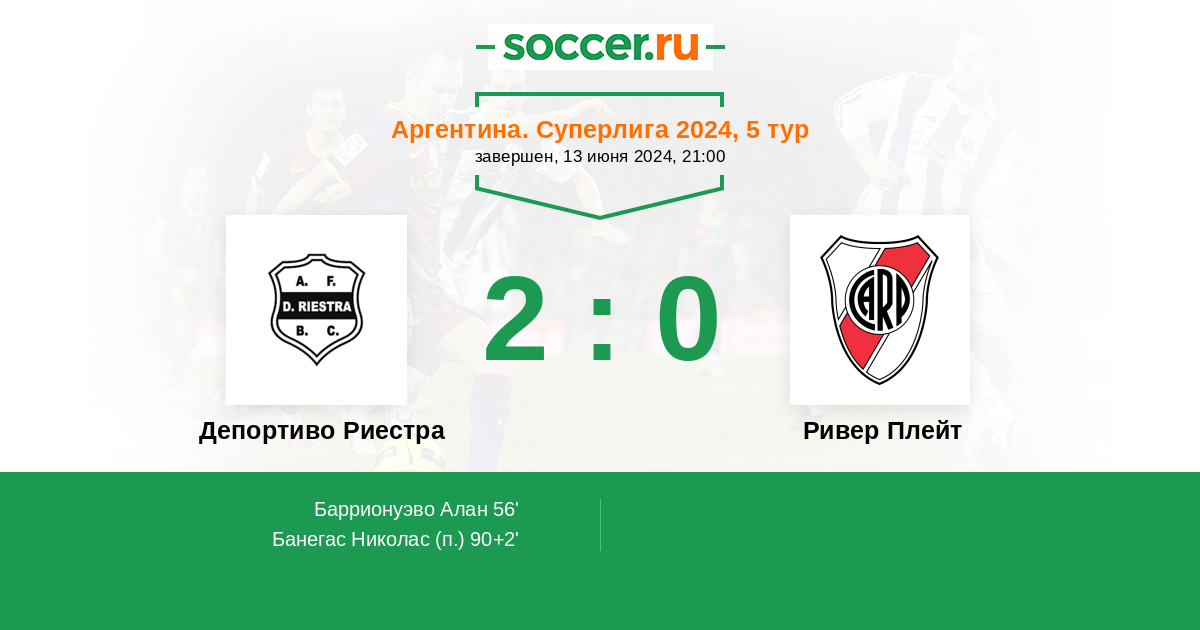 Протокол матча Депортиво Риестра против Ривер Плейт