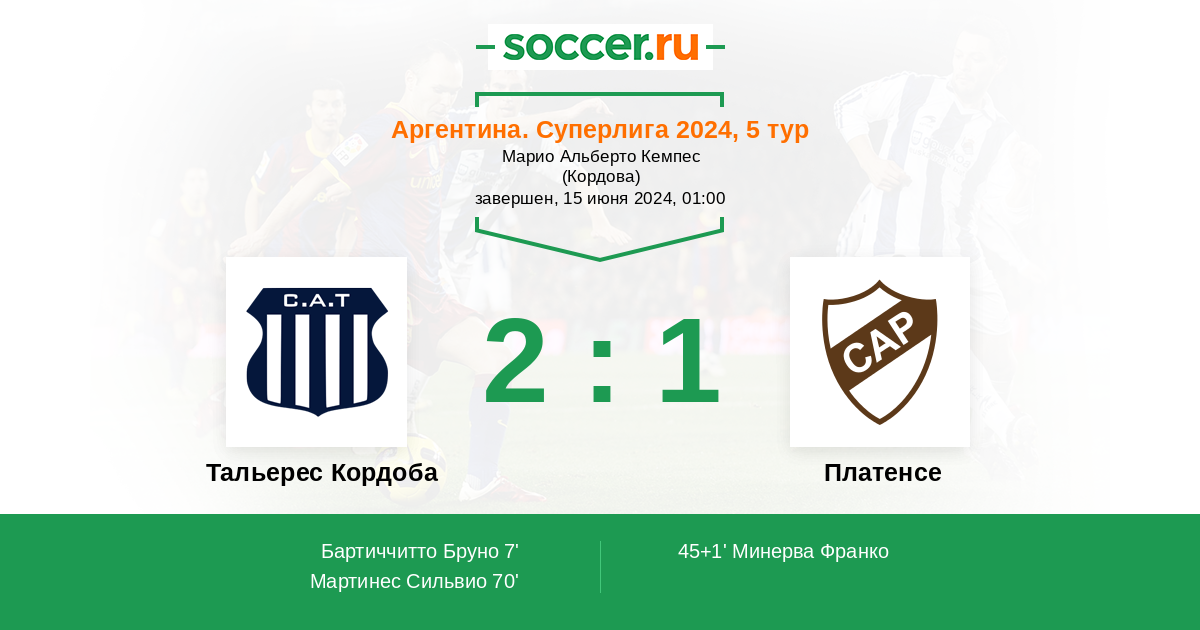 Протокол матча Тальерес Кордоба против Платенсе