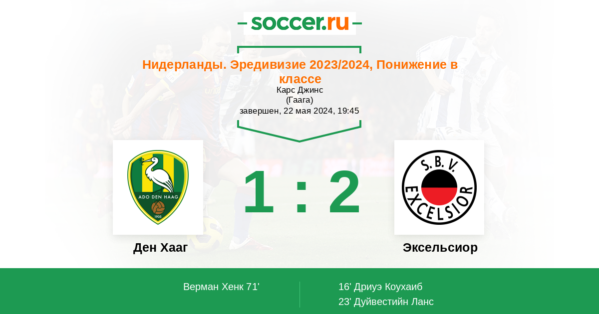 Ден Хааг - Эксельсиор ! Игры между этими командами проходят довольно результативно , а тут ещё " светит " понижение в классе . Надеюсь на голы в этом матче. ТБ .