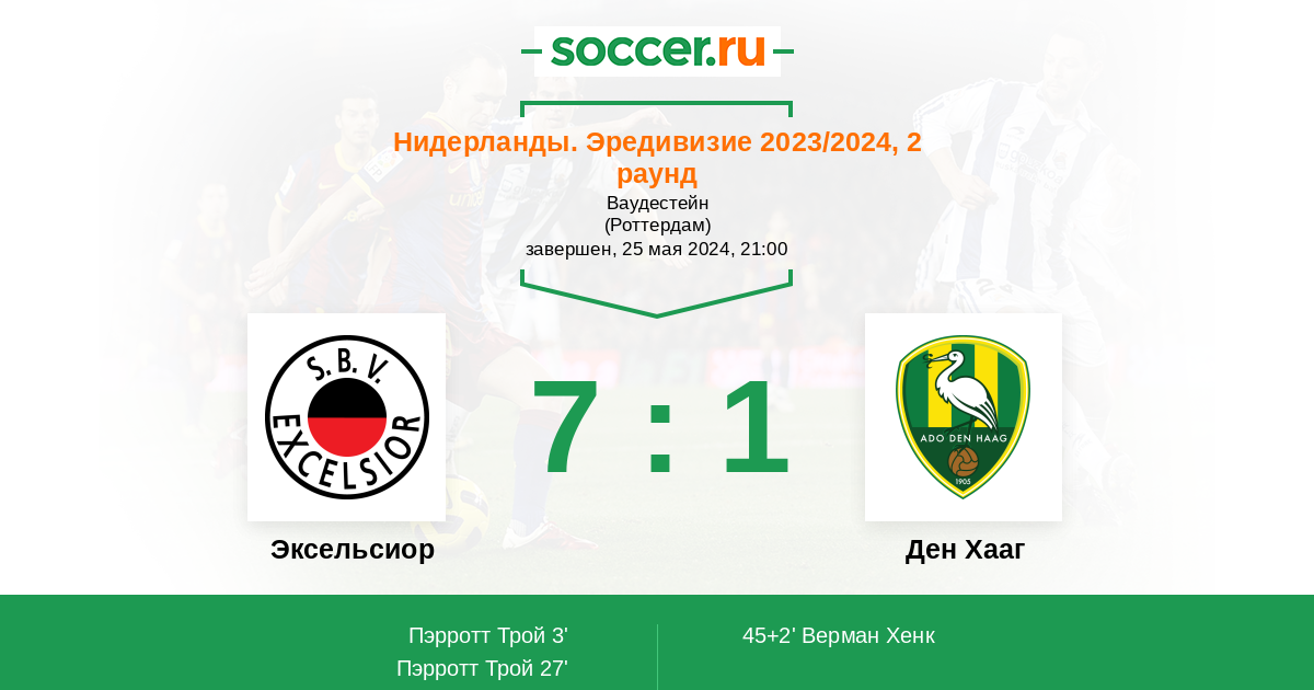 Протокол матча Эксельсиор против Ден Хааг