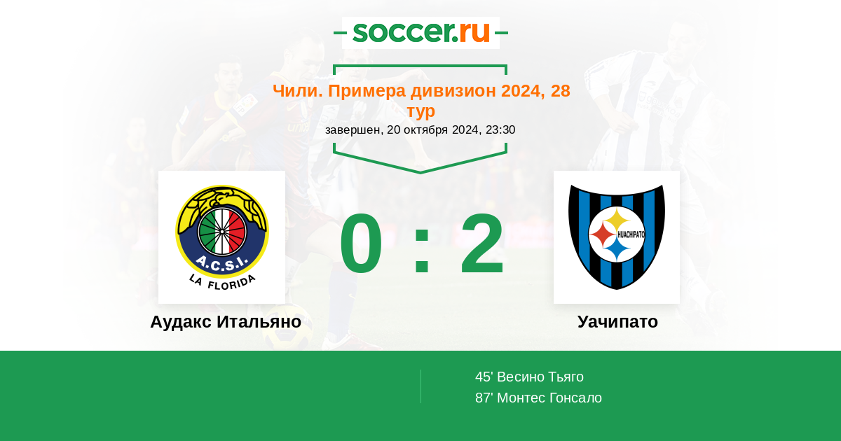 45' (0:1) Весино Тьяго (32) (Сепульведа Клаудио (6))
