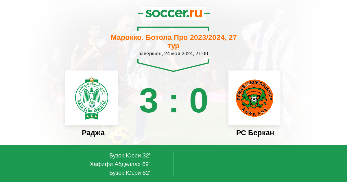 Протокол матча Раджа против РС Беркан