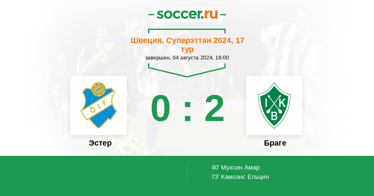 Протокол матча Эстер против Браге