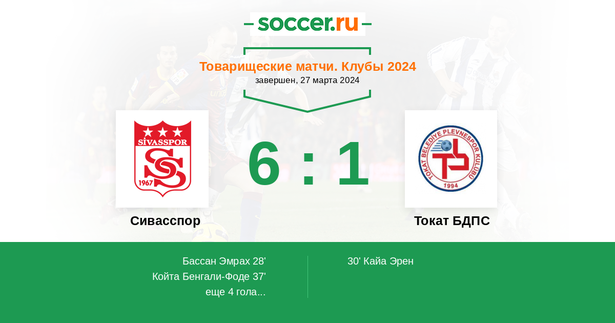 Протокол матча Сивасспор против Токат БДПС