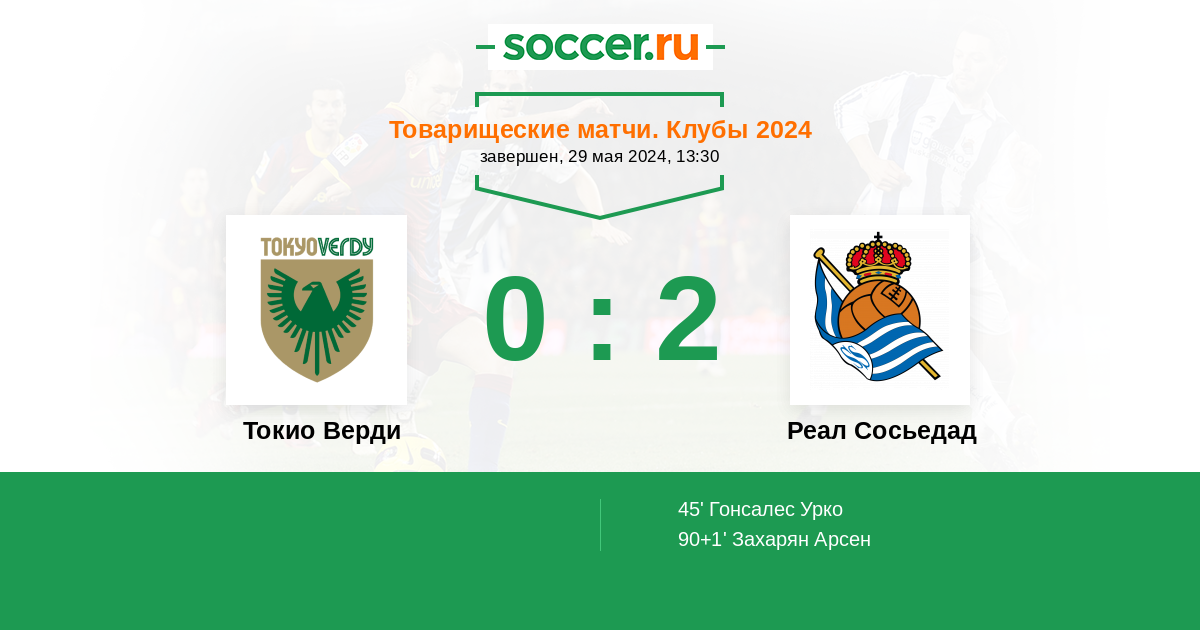 Протокол матча Токио Верди против Реал Сосьедад