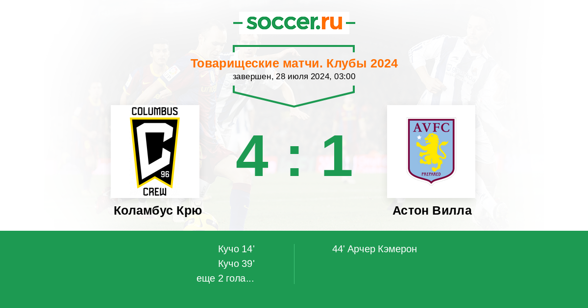 Протокол матча Коламбус Крю против Астон Вилла