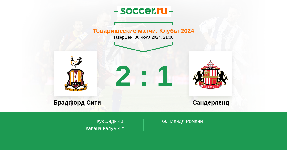 Протокол матча Брэдфорд Сити против Сандерленд