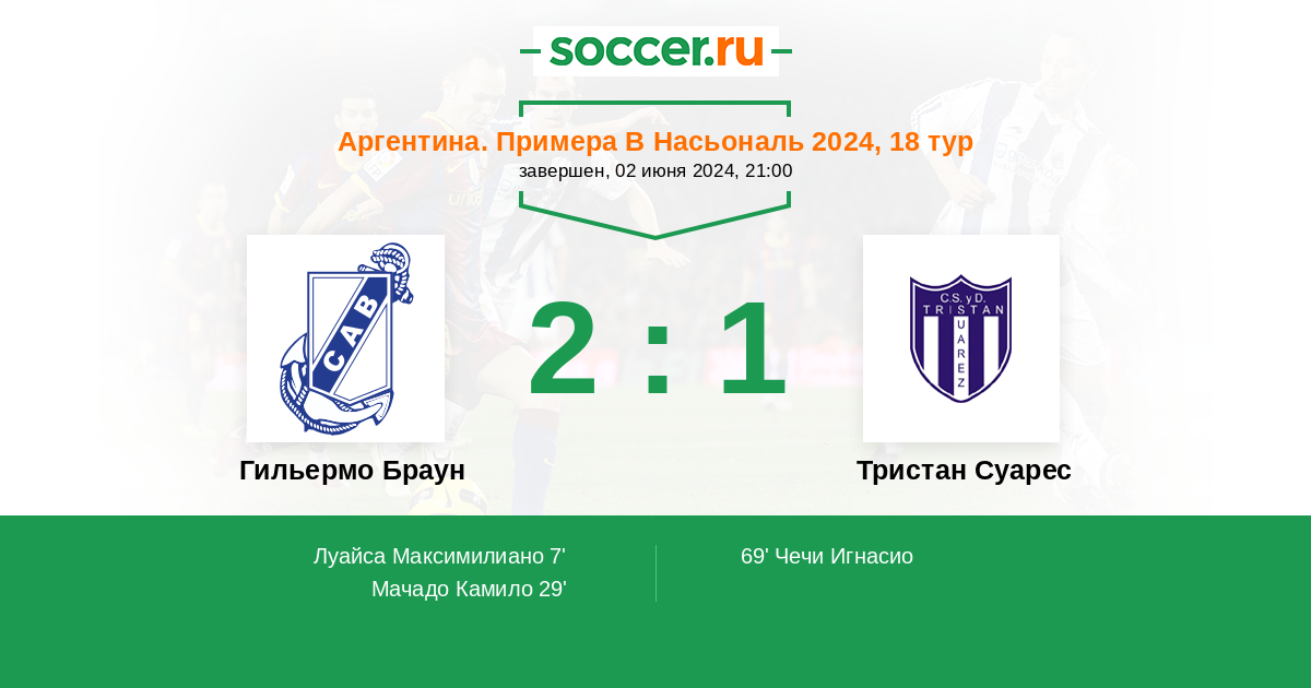 Протокол матча Гильермо Браун против Тристан Суарес