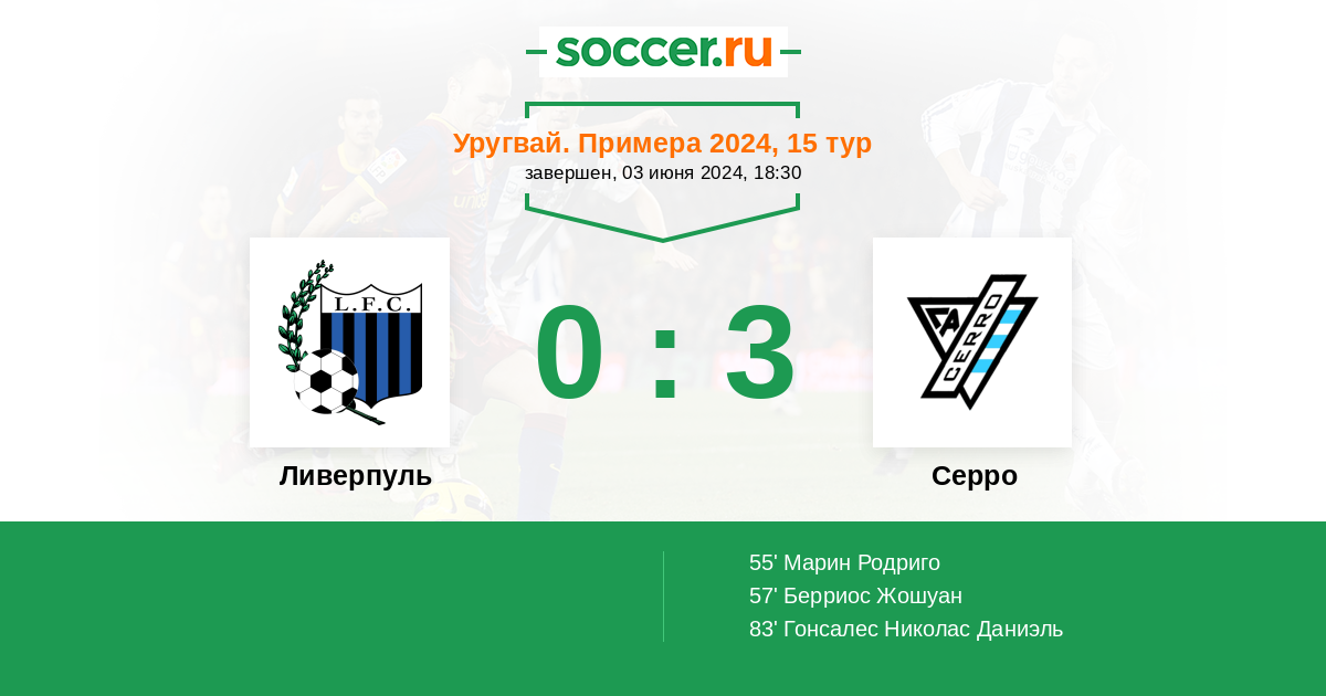 Протокол матча Ливерпуль против Серро