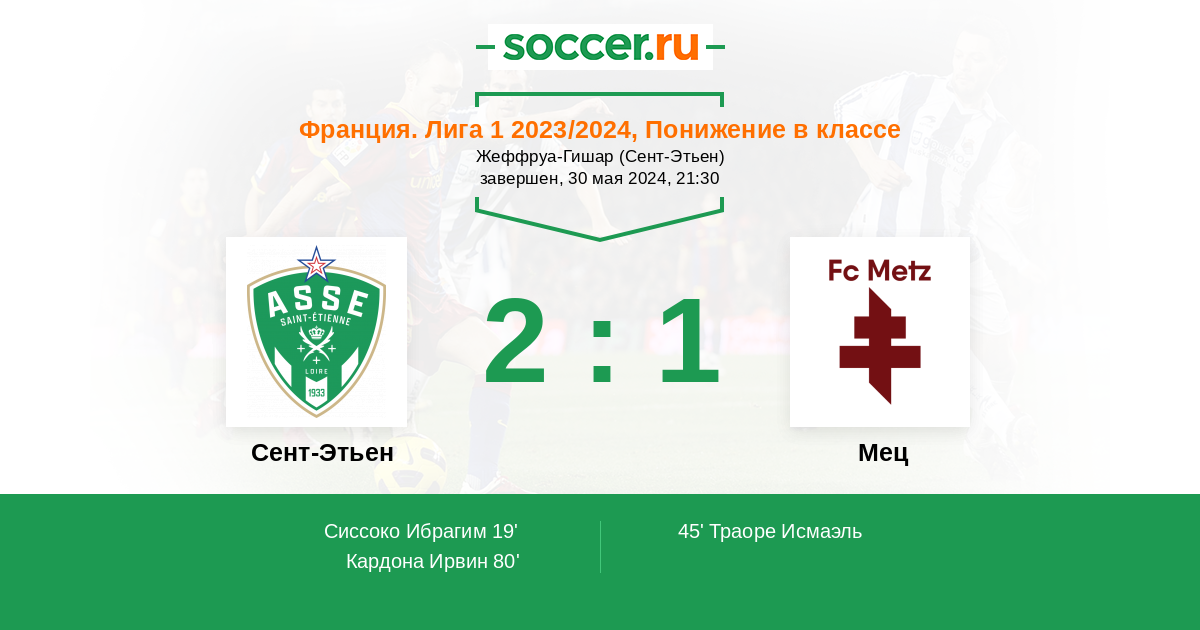 Протокол матча Сент-Этьен против Мец