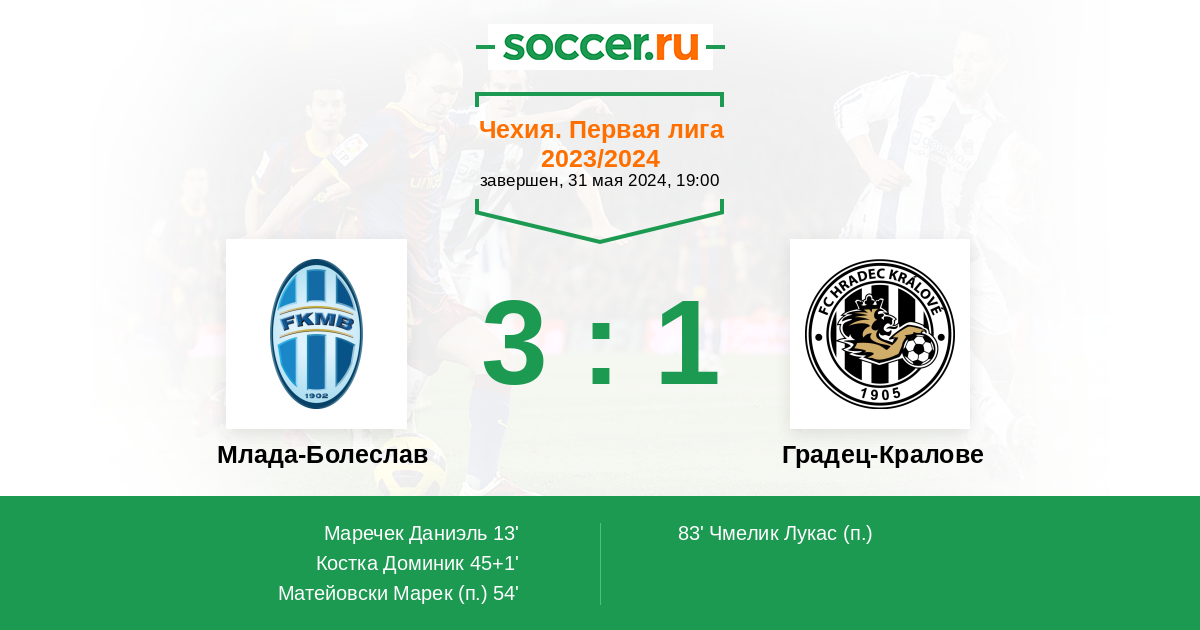 Протокол матча Млада-Болеслав против Градец-Кралове