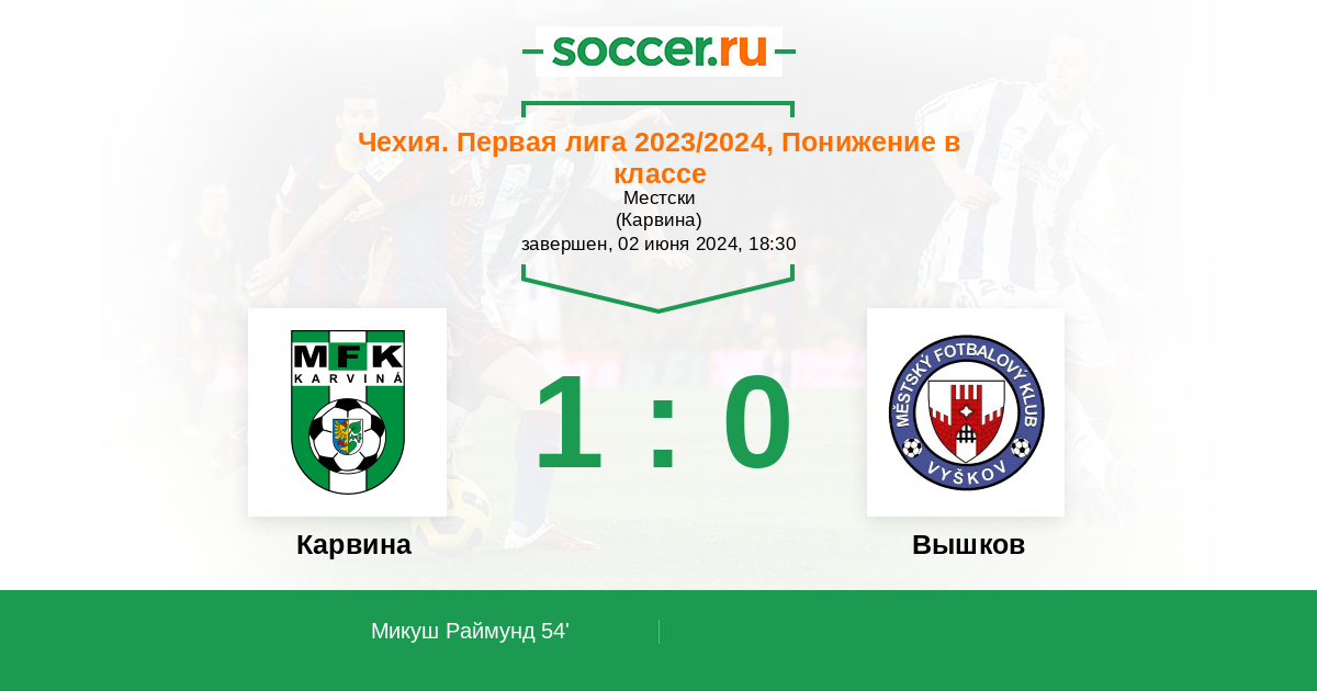 Протокол матча Карвина против Вышков
