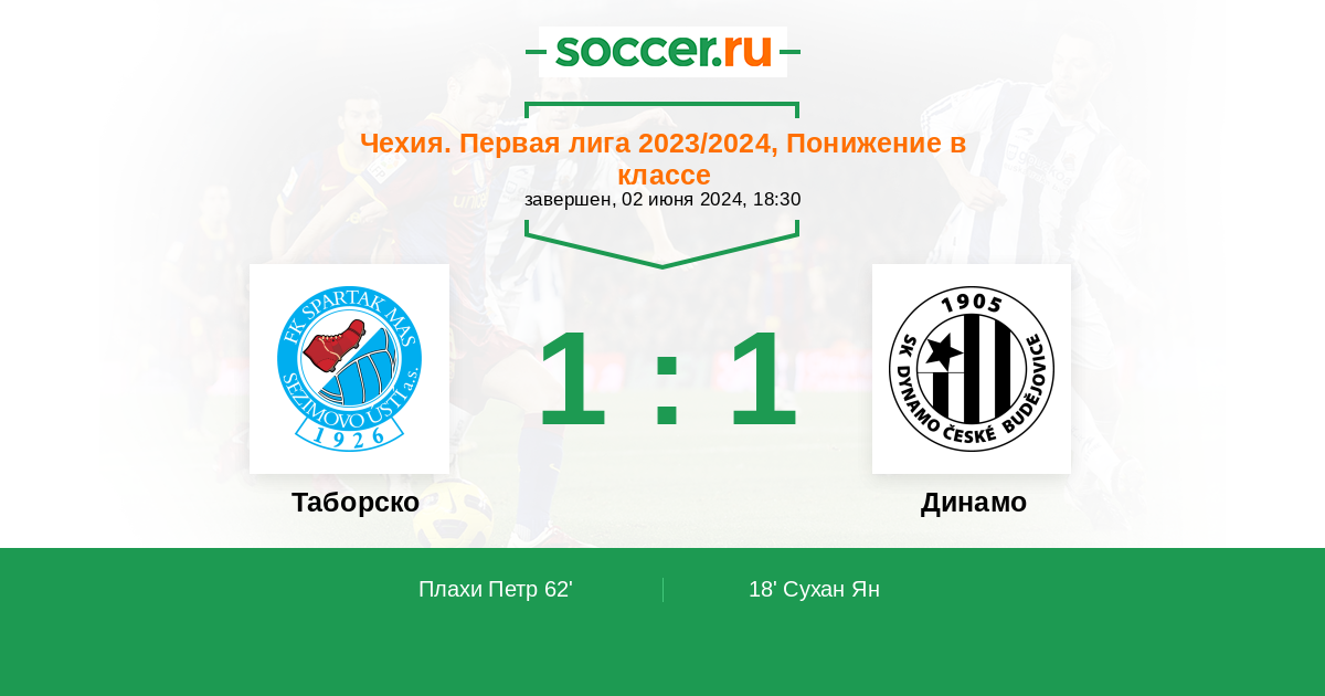 Протокол матча Таборско против Динамо