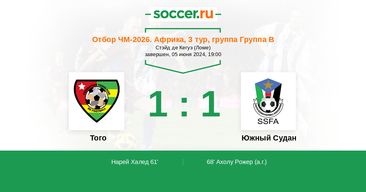 Протокол матча Того против Южный Судан