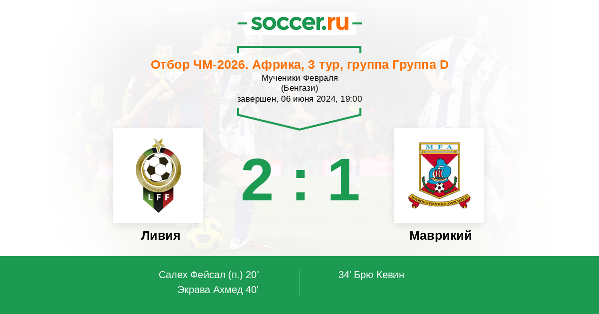 40' (2:1) Экрава Ахмед (9) (Али Салама Фадель (17))