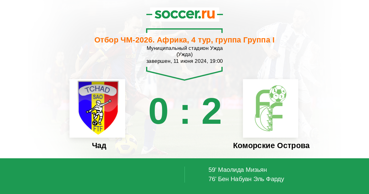 76' (0:2) Бен Набуан Эль Фарду (21) (М'Шангама Юссуф (10))