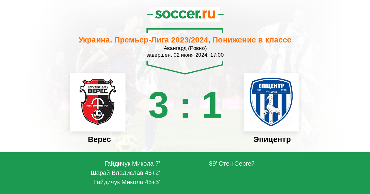 Протокол матча Верес против Эпицентр