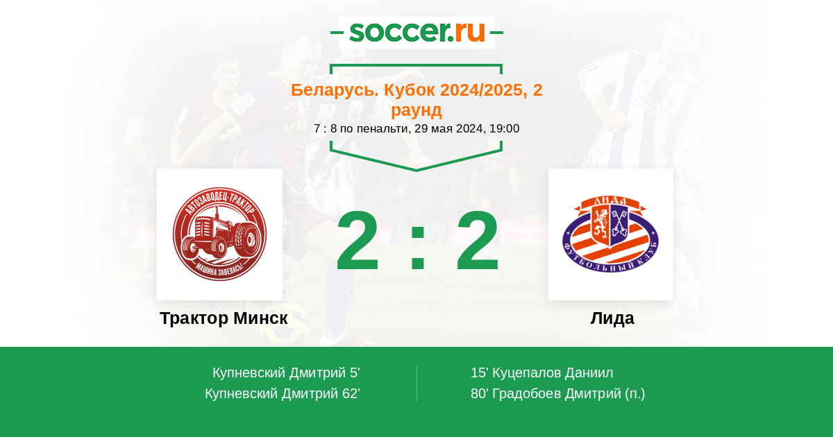Протокол матча Трактор Минск против Лида