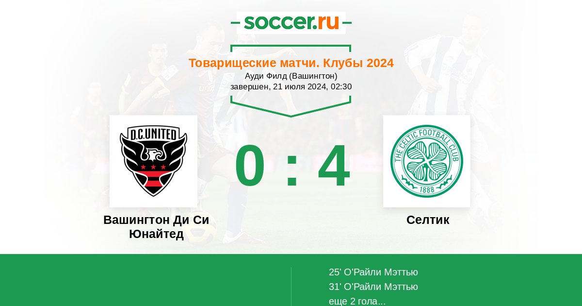 Протокол матча Вашингтон Ди Си Юнайтед против Селтик