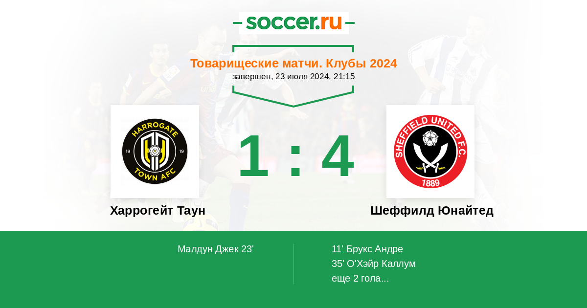 Протокол матча Харрогейт Таун против Шеффилд Юнайтед