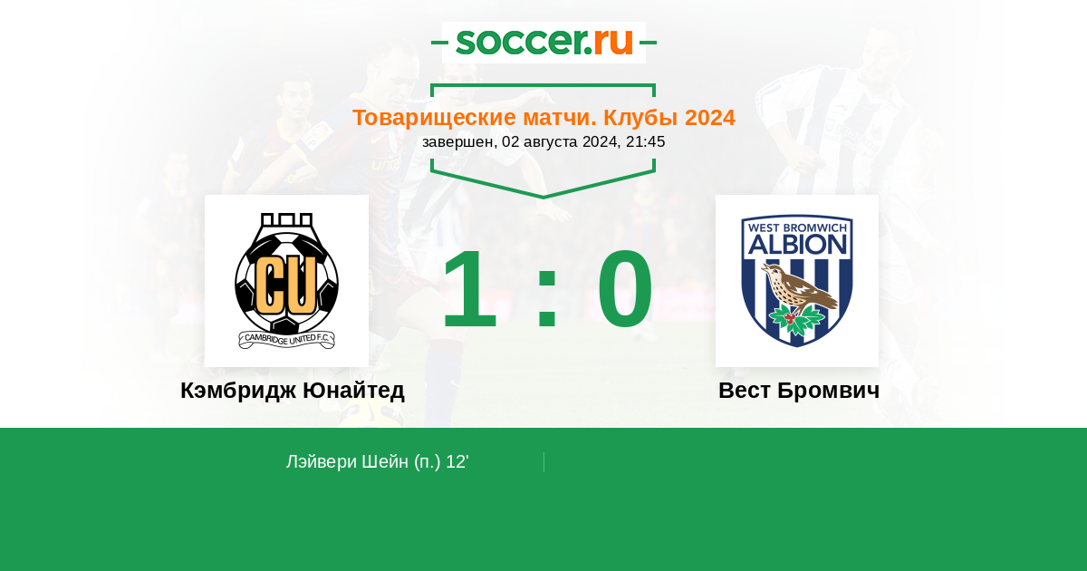 Протокол матча Кэмбридж Юнайтед против Вест Бромвич