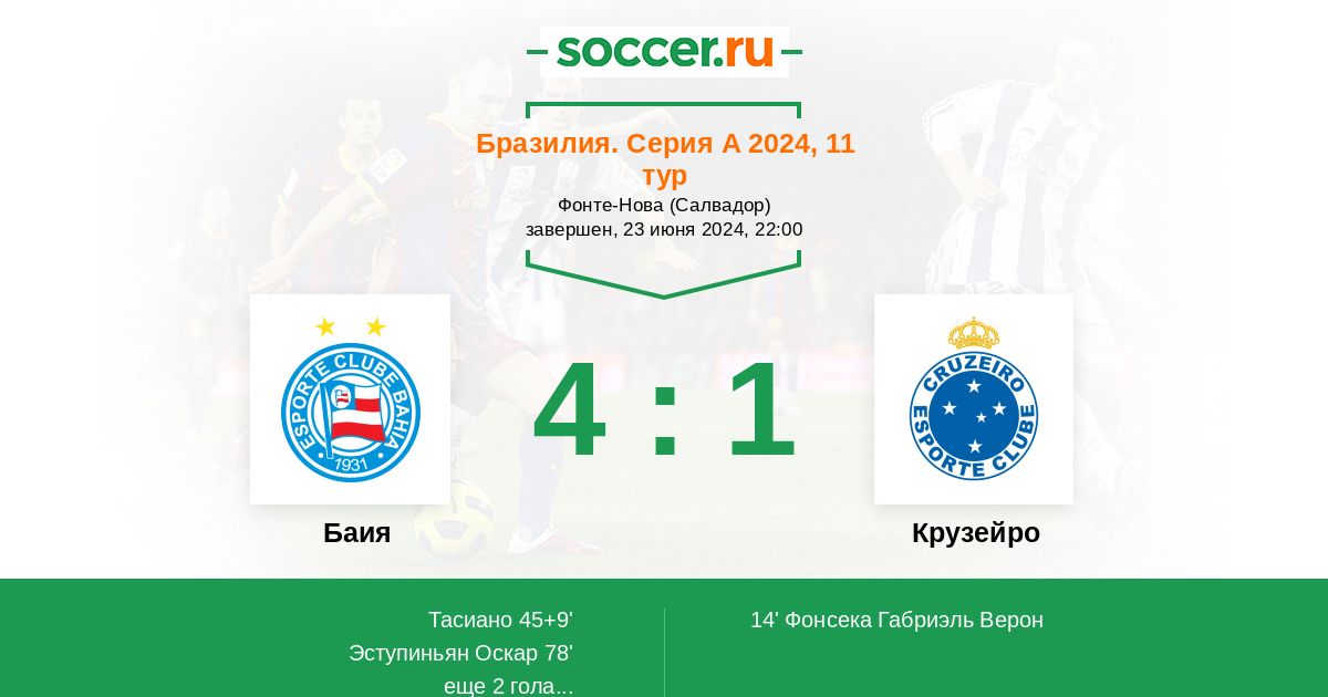 Протокол матча Баия против Крузейро