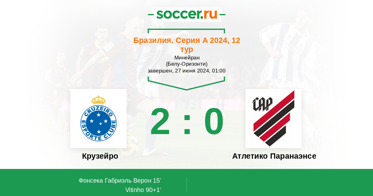 Протокол матча Крузейро против Атлетико Паранаэнсе