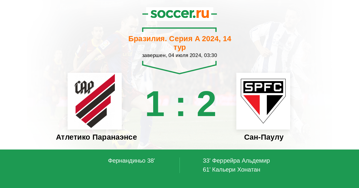 Протокол матча Атлетико Паранаэнсе против Сан-Паулу