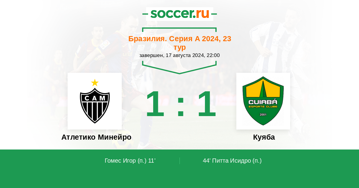 Протокол матча Атлетико Минейро против Куяба