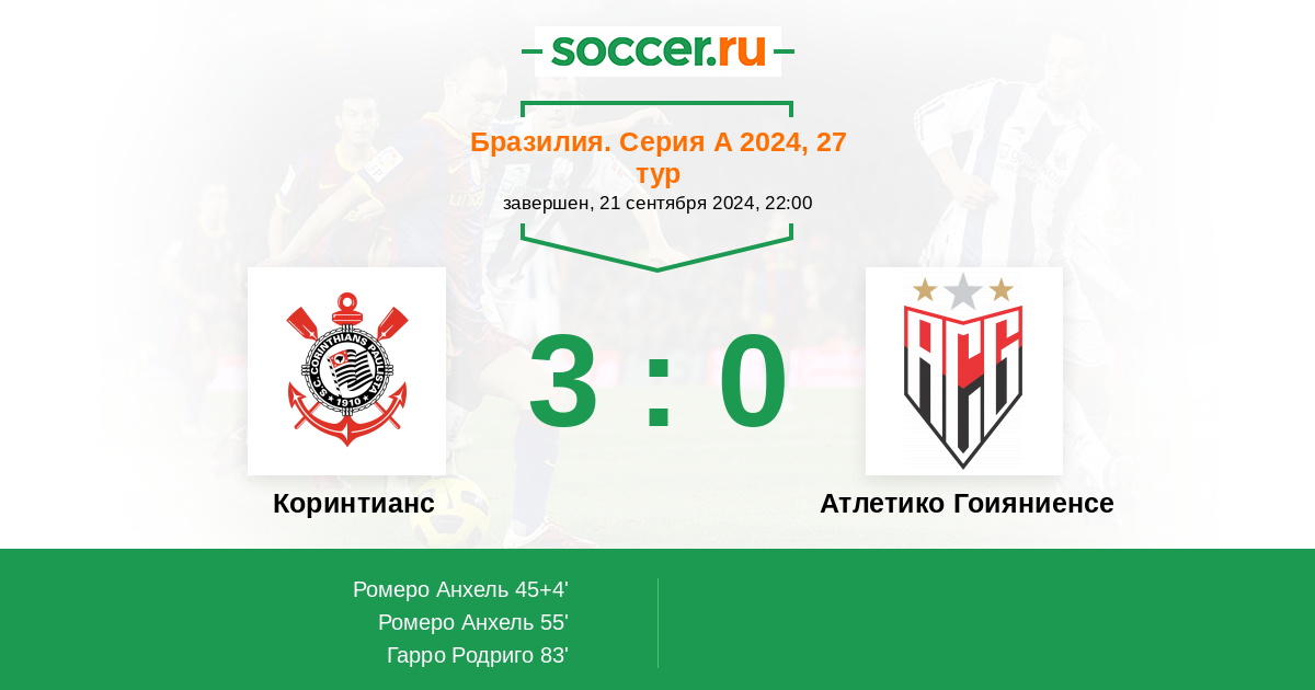 55' (2:0) Ромеро Анхель (11) (Юри Альберто (9))