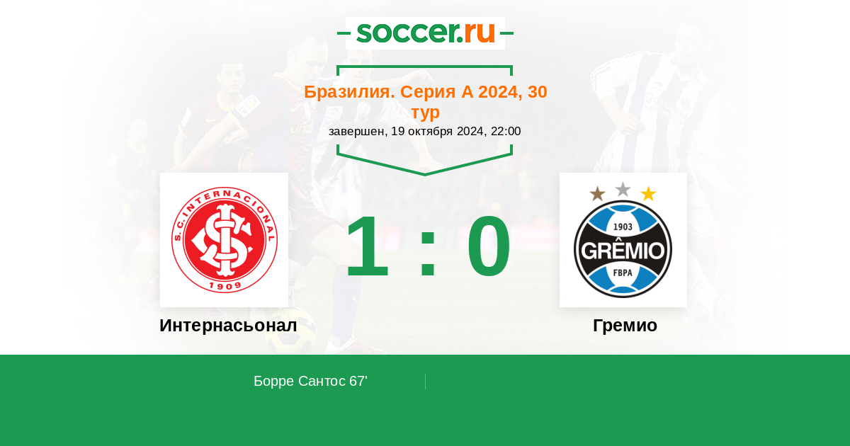 Протокол матча Интернасьонал против Гремио