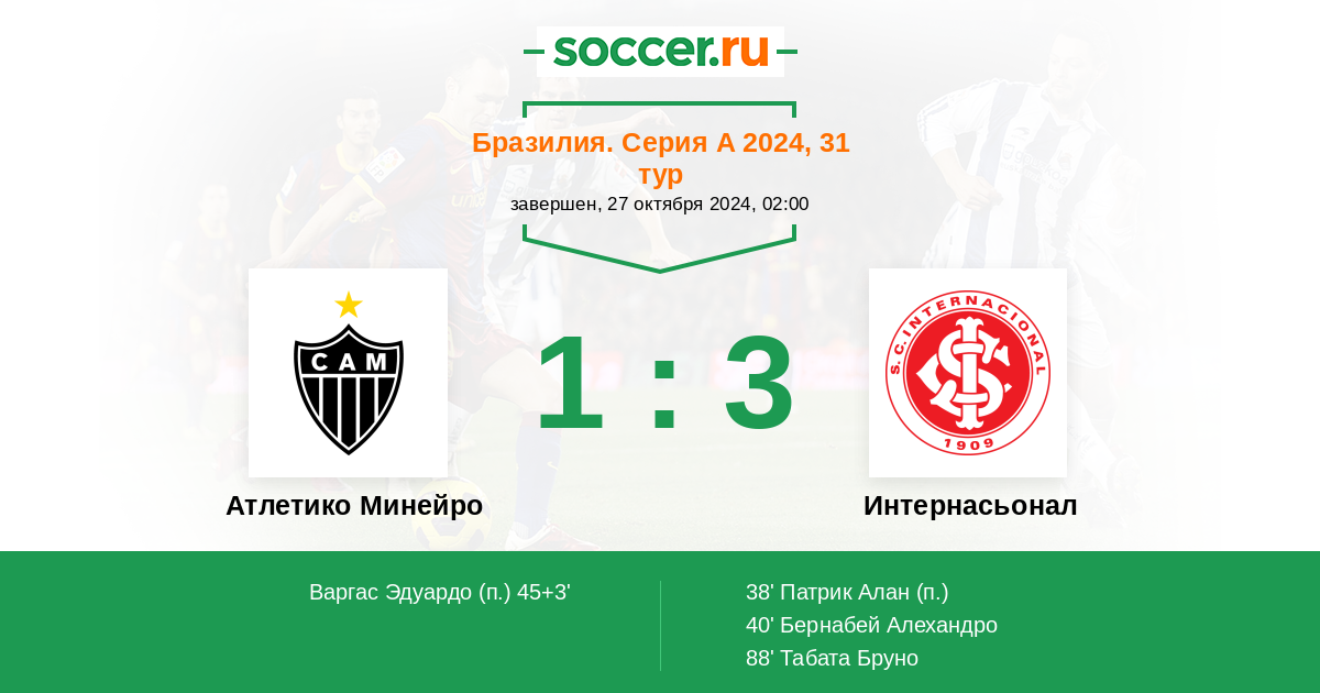 Протокол матча Атлетико Минейро против Интернасьонал