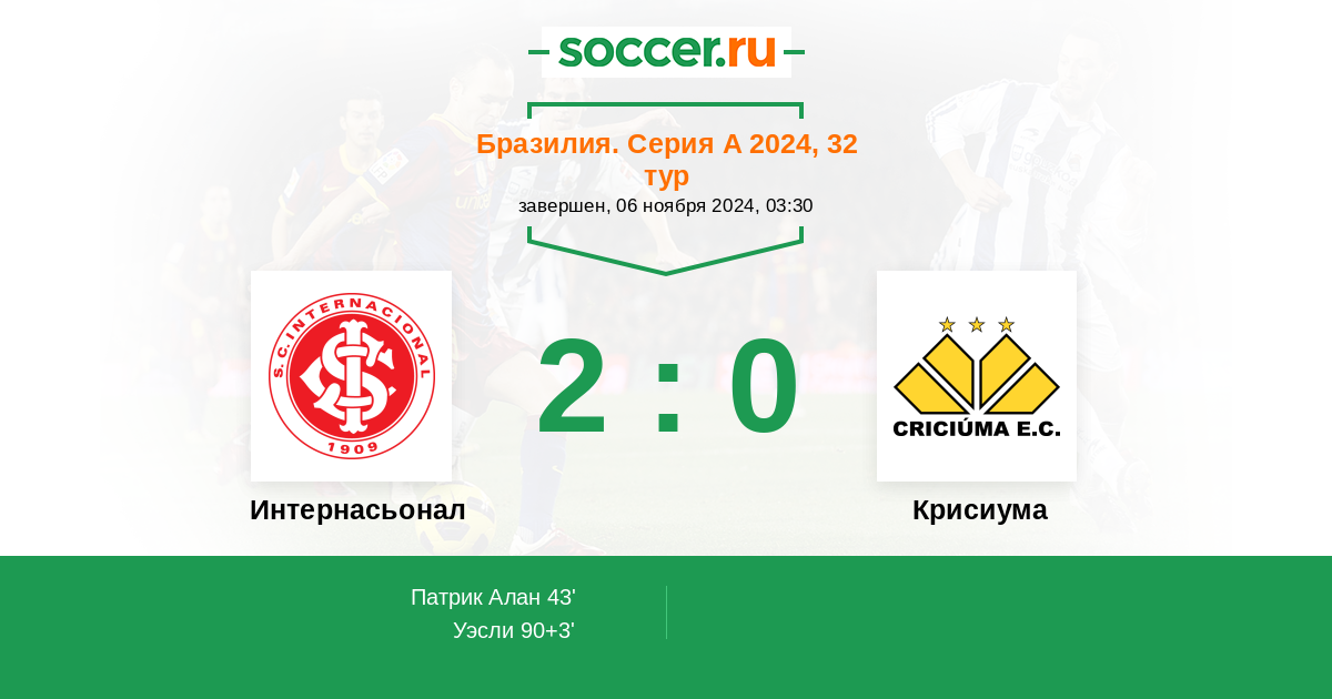 Гол90+3' (2:0) Уэсли (21) (Рохель Агустин (18))